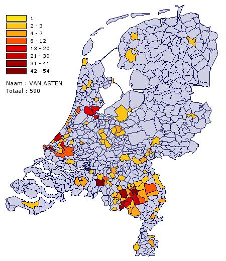 In Nederland wonen (data uit 1996) een aanzienlijk aantal (590) van Asten's (zie kaart).