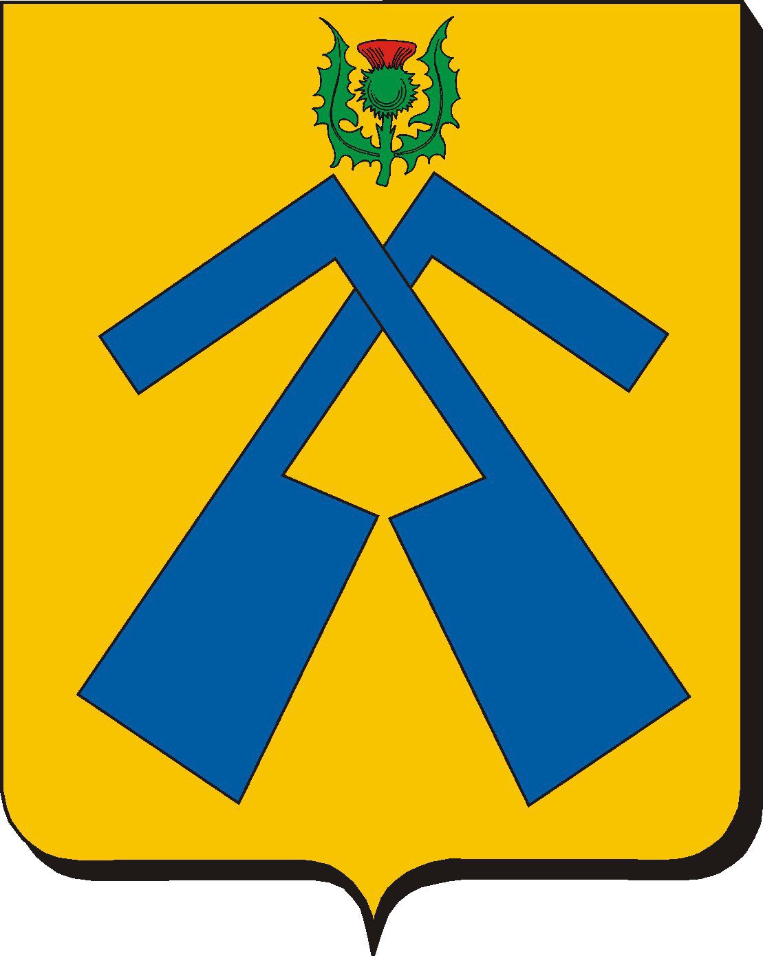 In goud twee blauwe schuingekruiste roeren, de helmstokken