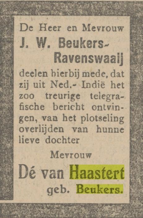 Pieter John haighton, geboren te Pasoeroean, oud 54 jr., zonder beroep, laatst gewoond hebbende te Semarang, echtgenoot van Betsij Preijer, zoon van Edmund Richard Haighton en van Gerharda Debora Johanna de Meester, beiden overleden; Aangevers: Johannes Jacobus Spiekerman van Weezelenburg, oud 54 jr., handelsgeëmployeerde en Gerrit Daniel Louis Haighton, oud 22 jr., ambtenaar der vierde klasse bij de tolrechten, wonende te Semarang (zoon).