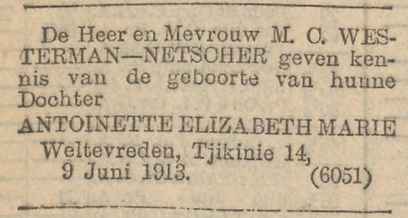 * Padang 04-05-1902 (RANI 1904 p.83 erk.); bevolkingsregister 's Gravenhage 1913