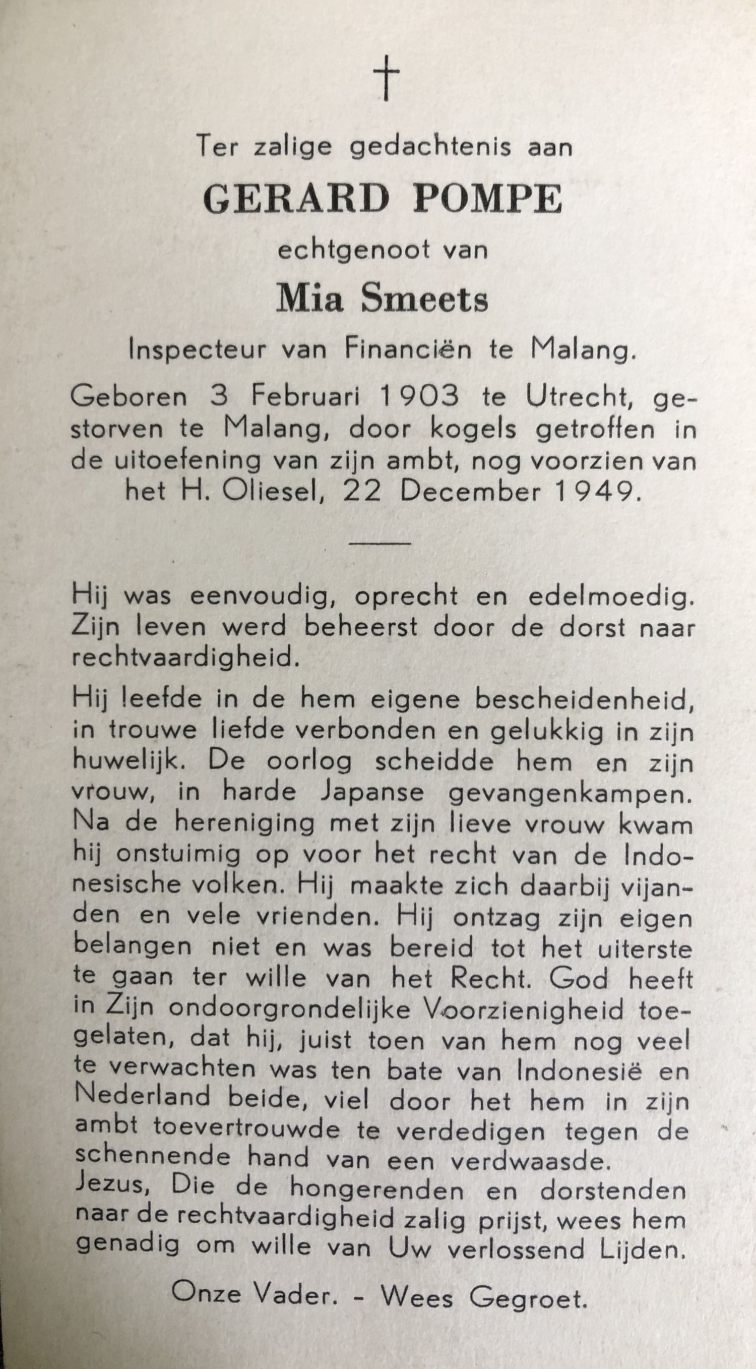 Leende 06-06-1694; Op zijn grafzerk in Leende staat: "Heer Arnoldus hier leyt. Eertyds gaf hy menschen spyse, spyst nu wormen tottertyd, 't lichaem weer uyt 't graf verreyse".