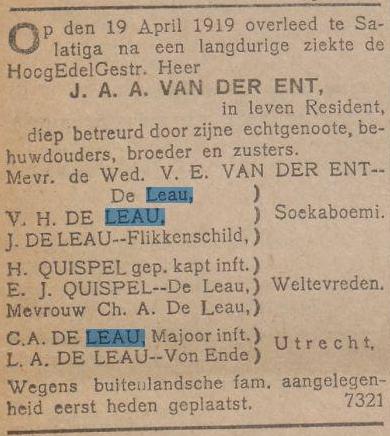 † Salatiga 19-04-1919; zie: Het nieuws van den dag voor Nederlandsch-Indië 02-05-1919