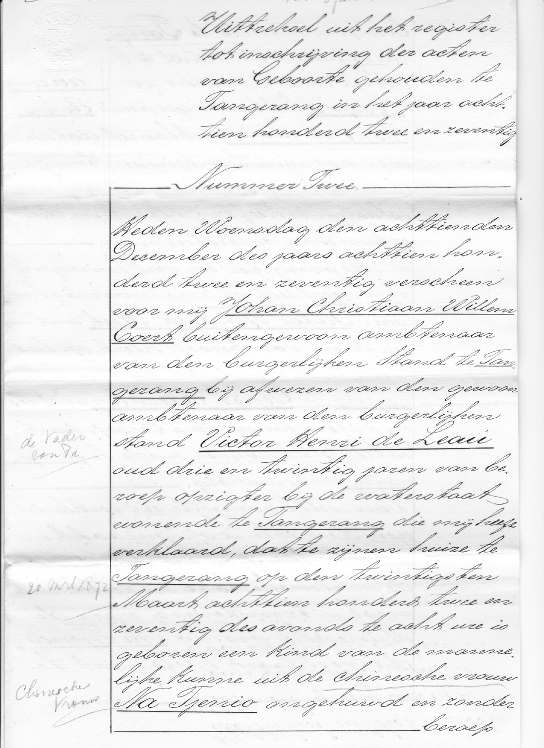 * Tangerang 20-03-1872 (RANI 1874 p.215); aangifte Tangerang 18-12-1872: