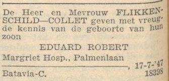 Het dagblad: uitgave van de Nederlandsche Dagbladpers te Batavia 19-07-1947 * Eduard Robert 17-07-1947