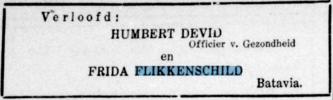 De West: nieuwsblad uit en voor Suriname 06-07-1949: verloofd: Humbert Devid, Officier van Gezondheid en Frida Flikkenschild. Batavia