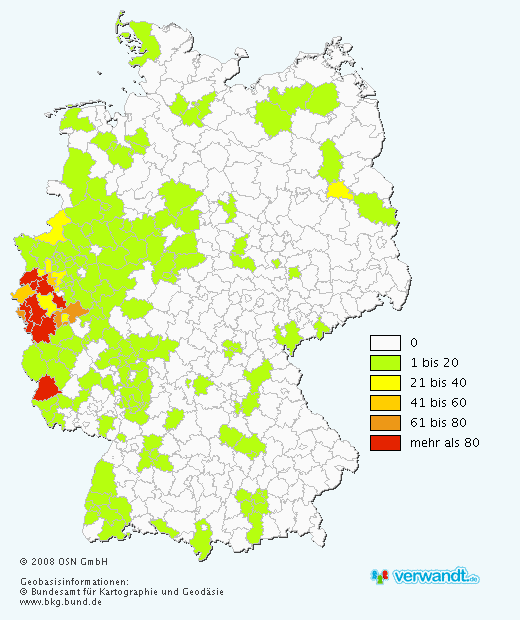 zie: kaart verspreiding van familienamen in Duitsland. | |||
