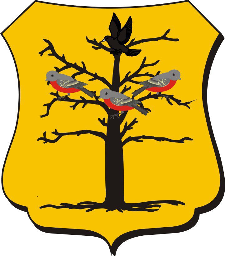 Wapen: in goud een dorre zwarte boom met in de top een zwarte vogel, zilver gesnaveld en op de middentakken drie roodborstjes, waarvan de linkse gewend.