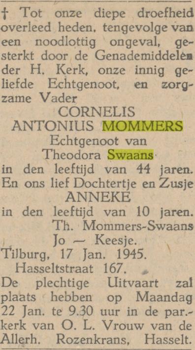 Waalwijk 20-11-1943 akte 125; Overlijdensadvertentie CBG VFADNL025926-19