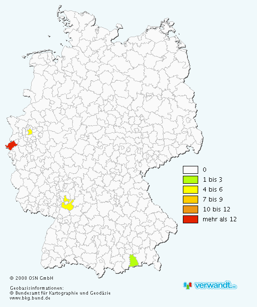 zie: kaart verspreiding van familienamen in Duitsland. | |
