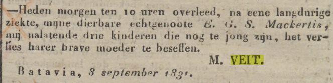† Batavia 08-09-1831 10 u. v.m. (RANI 1832 p.233)