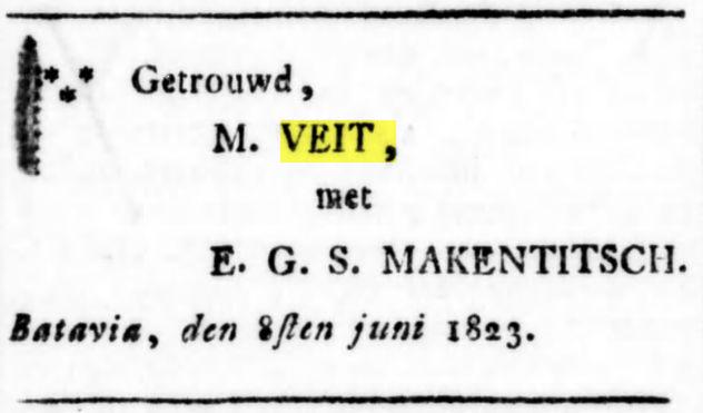 x Batavia 08-06-1823 [RANI 1824 p.A148 als Elizabeth Geertruida Makertich; Het Luthers trouwboek van Batavia 1812-1828 in 2000INN13 p.179] Elizabeth Geertruida Stephania MAKERTIS / MAKERTISCH / MACKERTIS / MAKENTITSCH / MAKERTITSCH