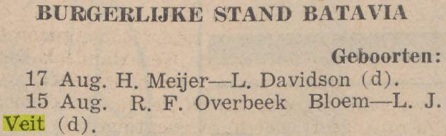LOUISE JEANNE VEIT, geb. Batavia 27 Maart 1912, huwde Batavia