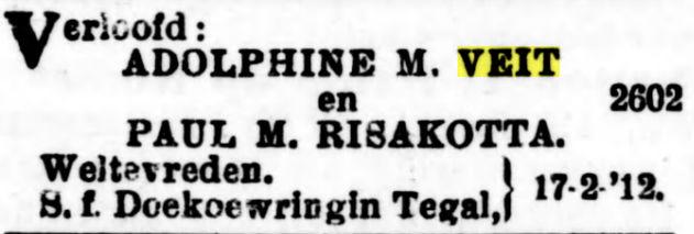 11. ADOLFINE MARIE VEIT, geb. Batavia 1 October 1889, huwde