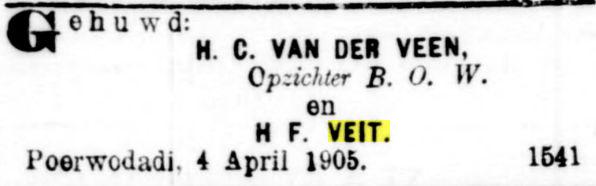 H.C. van der Veen, Opzichter B.O.W. en H.F. Veit, Poerwodadi 4 April 1905.