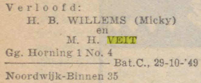 H.B. Willems (Micky) en M.H. Veit, Gg. Horning 1 No. 4 / Noordwijk-Binnen 35, Bat.C. 29-10-'49