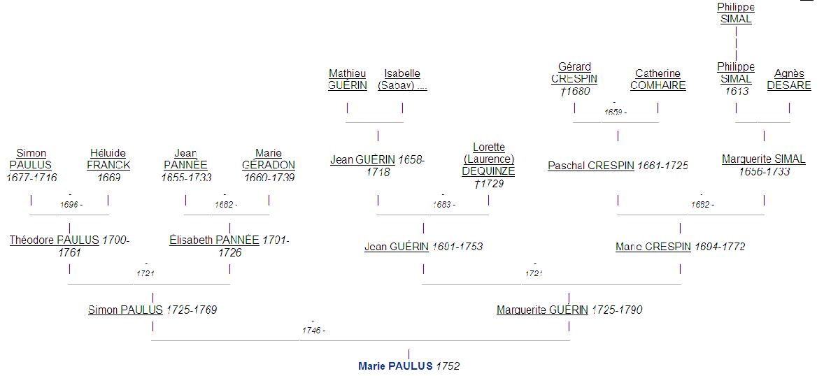 x Flémalle-Grande 26-06-1721 Marie CRESPIN [Kw.439], dr. van Paschal CRESPIN en Marguerite SIMAL.
